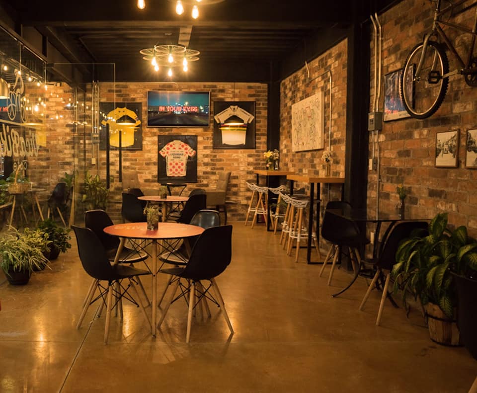 As you step inside, you'll immediately notice the inviting atmosphere, accentuated by meticulously maintained interiors that reflect a creative spirit. The vibrant bicycle-themed decor not only adds an interesting character to the place but also sets the perfect backdrop for casual conversations or catching up with friends.